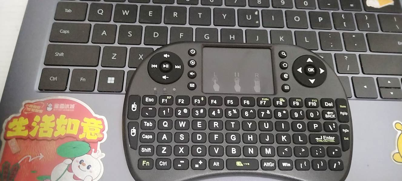 看到这里,也许你会感到疑惑,但聪明的你很快就能明白。想象一下,班上的多媒体的光标突然自己动起来,让同学们以为有黑客入侵。老师不让我们动班上电脑,那就坐在座位上远程操控,打开视频或游戏,老师一来就立刻按下alt+tab,就像什么事都没发生。我手上就有一个12块包有的迷你键盘,两节七号电池供电,蓝牙连接。它不仅有较全的键位,还有一块很小的触摸板。但问题是那个触摸板用起来真的很难受,指针总是乱飘,而且虽然键位是标准的QWERTY布局,但很多按钮移了位,比如win键在右边,上下左右键在上面,-和=键不在0键的右边,而在左下角,因此额外学习成本很高,我也总是打错字。它的手感也让人难以接受,它连薄膜键盘都不是,只能说是一个键很多的遥控器(遥控器按钮手感都比这个好)因此如果你想用这个键盘码字,还是建议使用常规键盘。