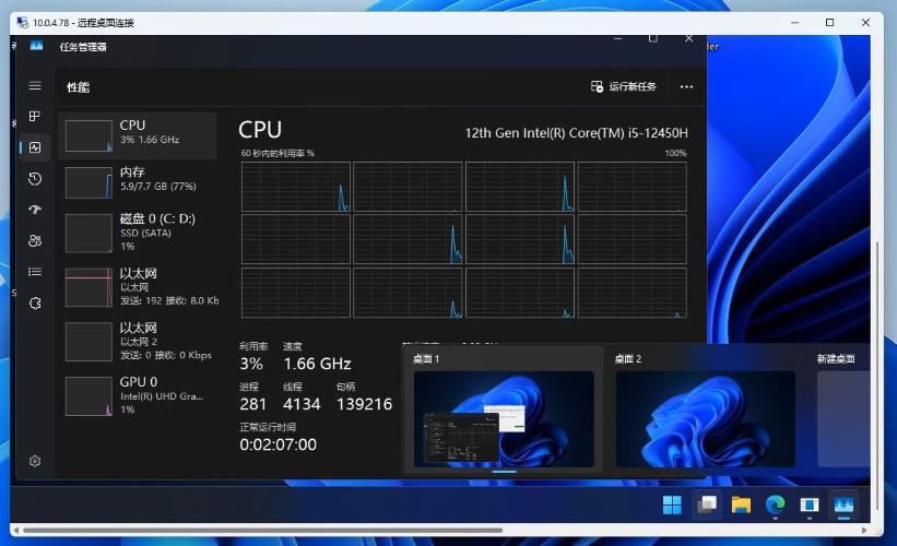 我成功用这个账户连接到那台挂迅雷的电脑,当我看到 OOBE 结束,桌面展示在我眼前,我是如此激动,在那里发癫,就像原始人第一次见到电脑。并且你知道吗,Windows RDP 原生支持触屏,而且在内网里延迟真的很低,画质肉眼都看不出什么压缩,我宣布 mstsc 是微软搞出来的最好的软件!而且老师用 Administrator 账户上课,能正常进行教学,我们登录和他完全没有干扰,老师那里也不会有任何显示。两个用户如同两个完全分割的世界,老师如往常一样进行上课,似乎什么都没有发生。
