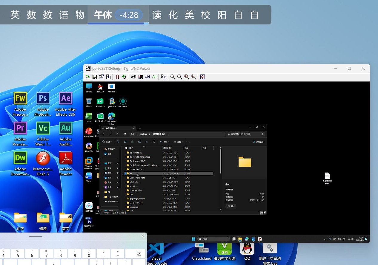 这里我们以 Tight VNC 为例,安装非常简单,基本上就是一路 Next,然后在安卓手机或其他设备上安装 RVNC Viewer 等软件(电脑上不要装RealVNC,要登录,麻烦的死),连接到 IP + 端口号(例如 10.0.64.77:5900)就可以直连 Administrator,看到老师在干什么,你也可以在老师板书的时候偷偷用橡皮擦工具擦掉,但这样太贱了,我们都是在不影响正常教学的情况下使用的。